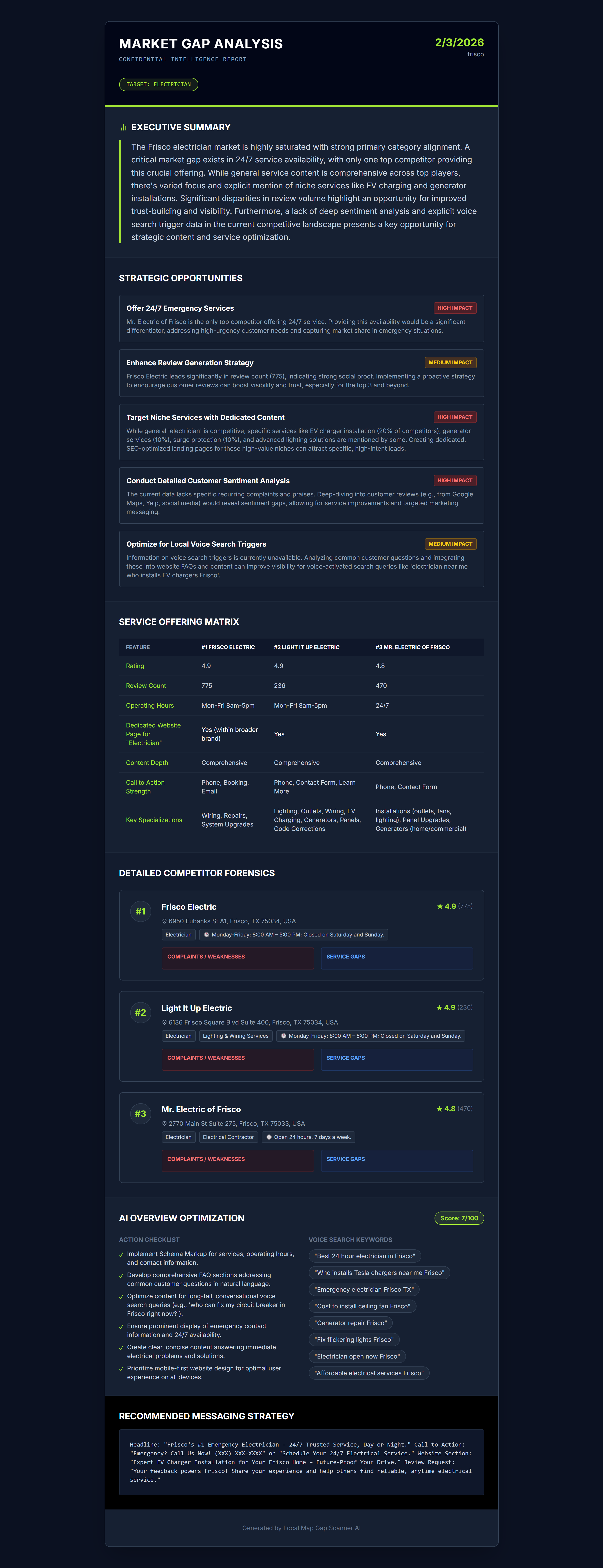 Intelligence dossier with source analysis, strategic recommendations, and actionable SEO insights for local domination.